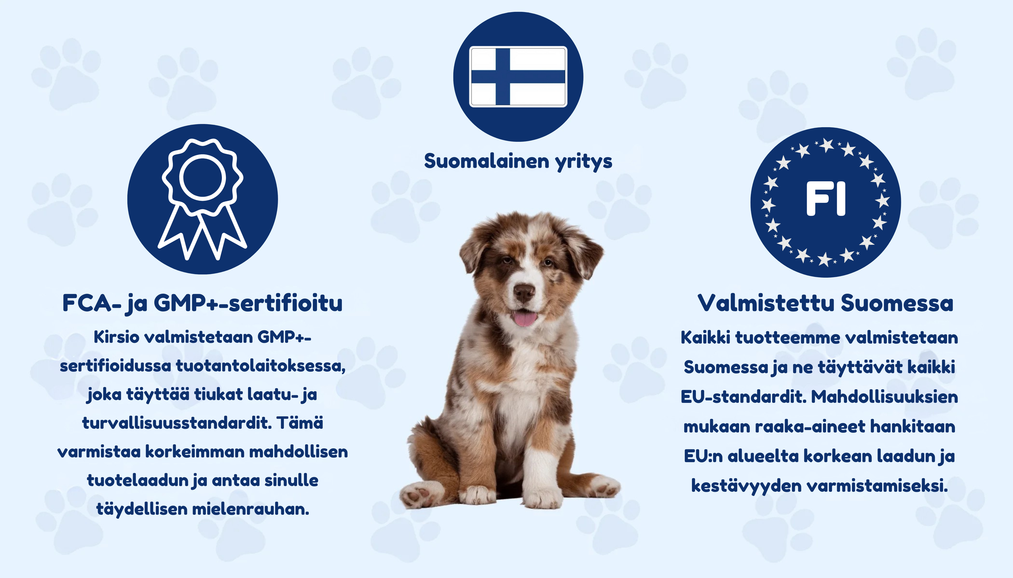 Olemme tuotteestamme niin varmoja, että tarjoamme myös 60 päivän tyytyväisyystakuun. Jos koirasi ei saavuta toivottuja tuloksia, saat rahasi takaisin.
