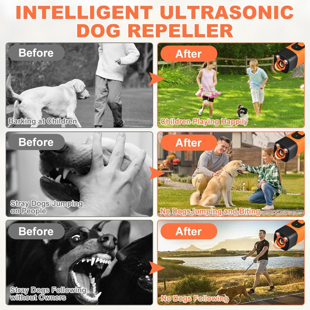 Hold din hund stille! Jeg kan godt lide, at det fungerer som en lommelygte og udsender en frekvens, som hunde kan høre. Den er sikker og gør ingen skade. Den har en oplader, så du behøver ikke bekymre dig om batteriet. Den virker godt på gåture.