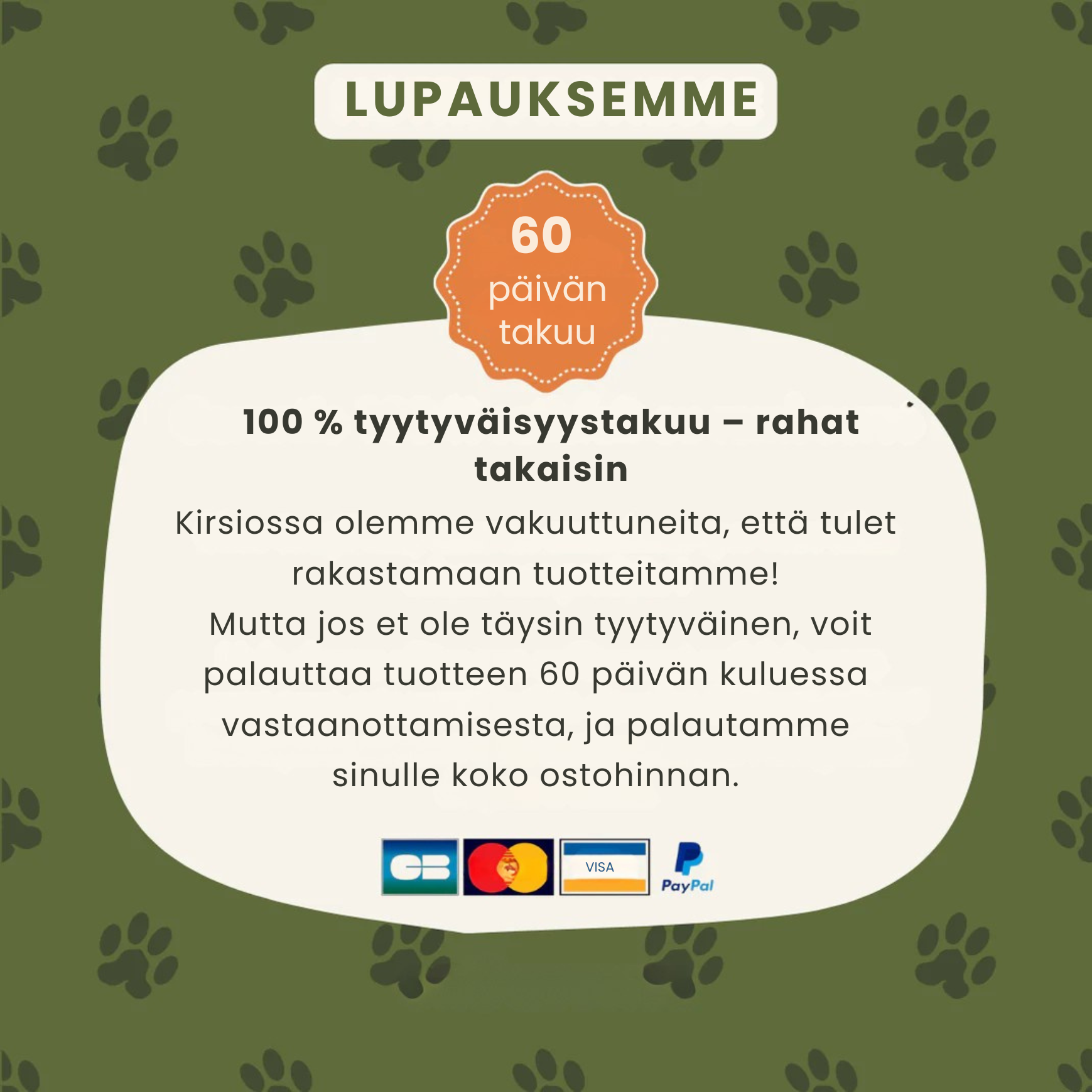Jos lemmikkisi ei ole vakuuttunut, voit palauttaa tuotteen ja saat täyden hyvityksen.
